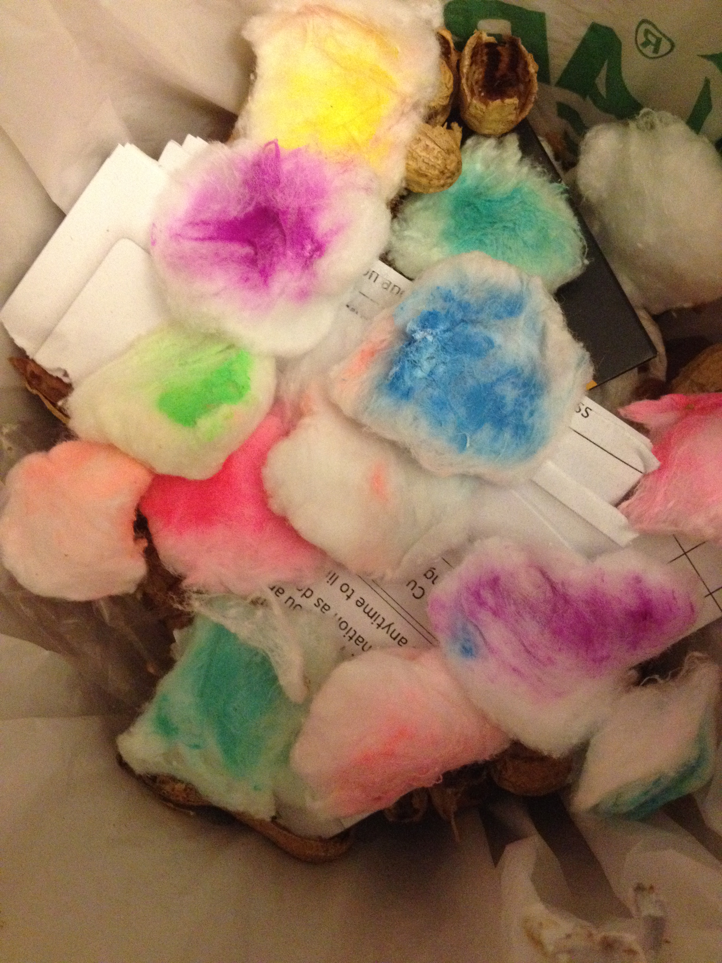 You can see some of my husband’s peanut shells underneath. He feels that it is important to shell and eat peanuts while he watches baseball on TV. So, as long has he doesn’t complain about the nail polish bottles that are strewn all over our house, I won’t complain about the peanut skins that land on the carpet. The things you do for love.