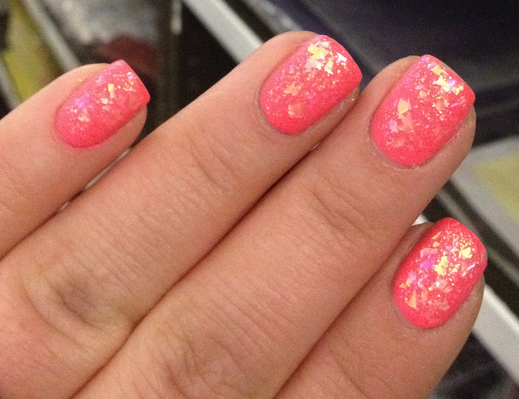 I was actually prompted to try this technique as part of a weekly nail art challenge on instagram. (Check out #wnac2015 on instagram!) The nails were also supposed to have an element of holographic-ness, so I added a little flower shaped holographic glitter on each nails as well as a top coat that had some holographic glitter in it. I was actually really happy with how these turned out!