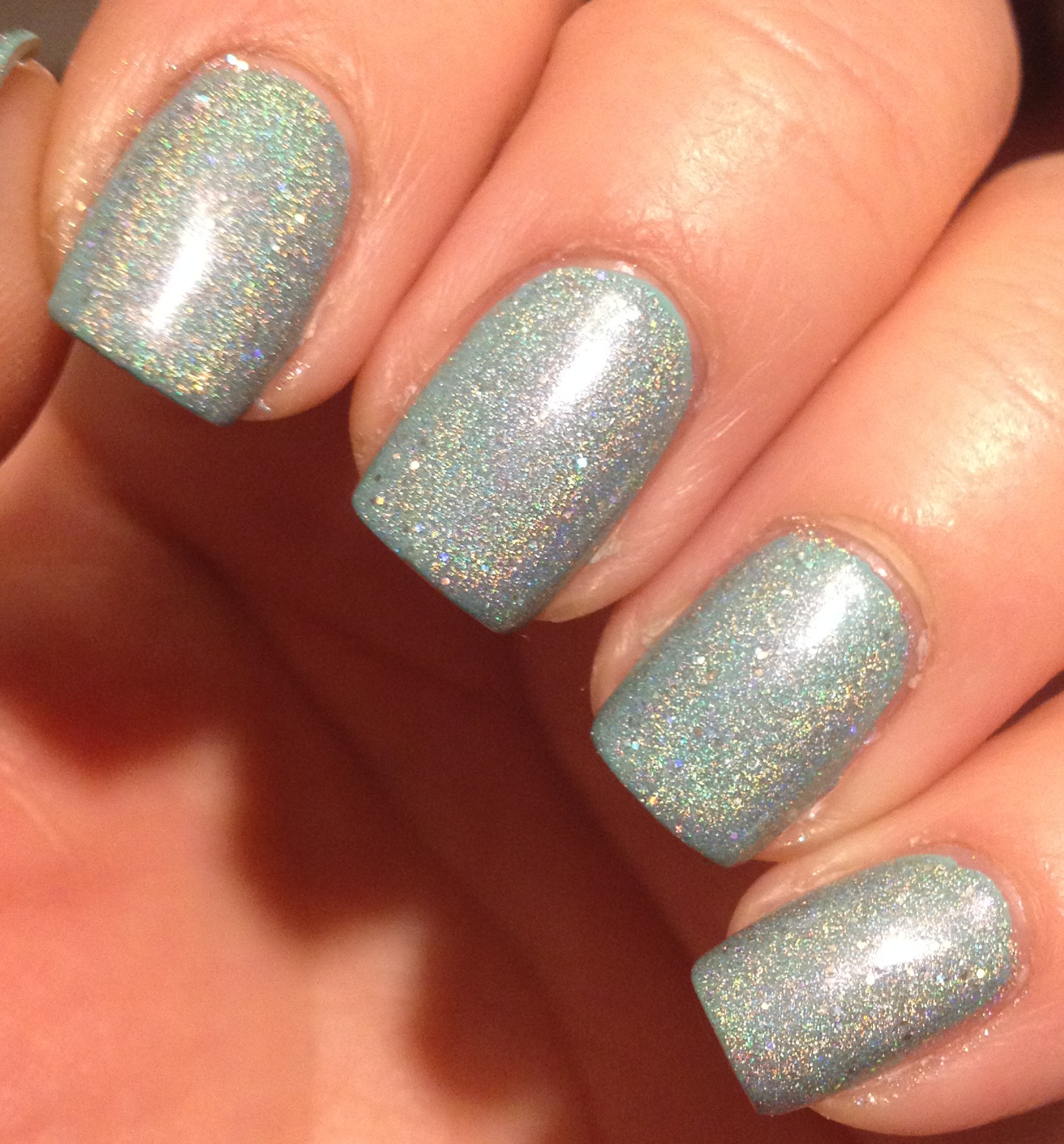 Mirrorball has a fairly sheer formula, so it actually works really well as a topper to other polishes. Here it is layered over Wet n Wild -I Need a Refresh-Mint. (By the way, the current version of I Need a Refresh-Mint is a much brighter blue than the version I own. The older version is pretty much a dead on dupe for China Glaze – For Audrey.) I can’t wait to layer Mirrorball over all sorts of neon colors this summer.