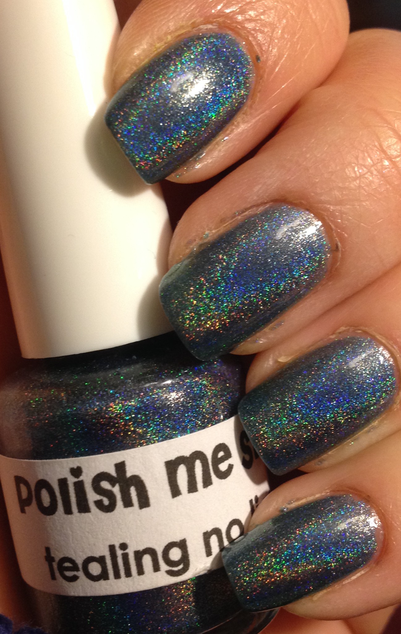 The next polish is just like camping… It’s in tents. (In tents… Intense. Get it?) Polish Me Silly – Tealing No Lies is the most holo of the holo polishes that I own. The linear rainbow is just so strong. Someday I’ve got to order me some more Polish Me Silly polishes.