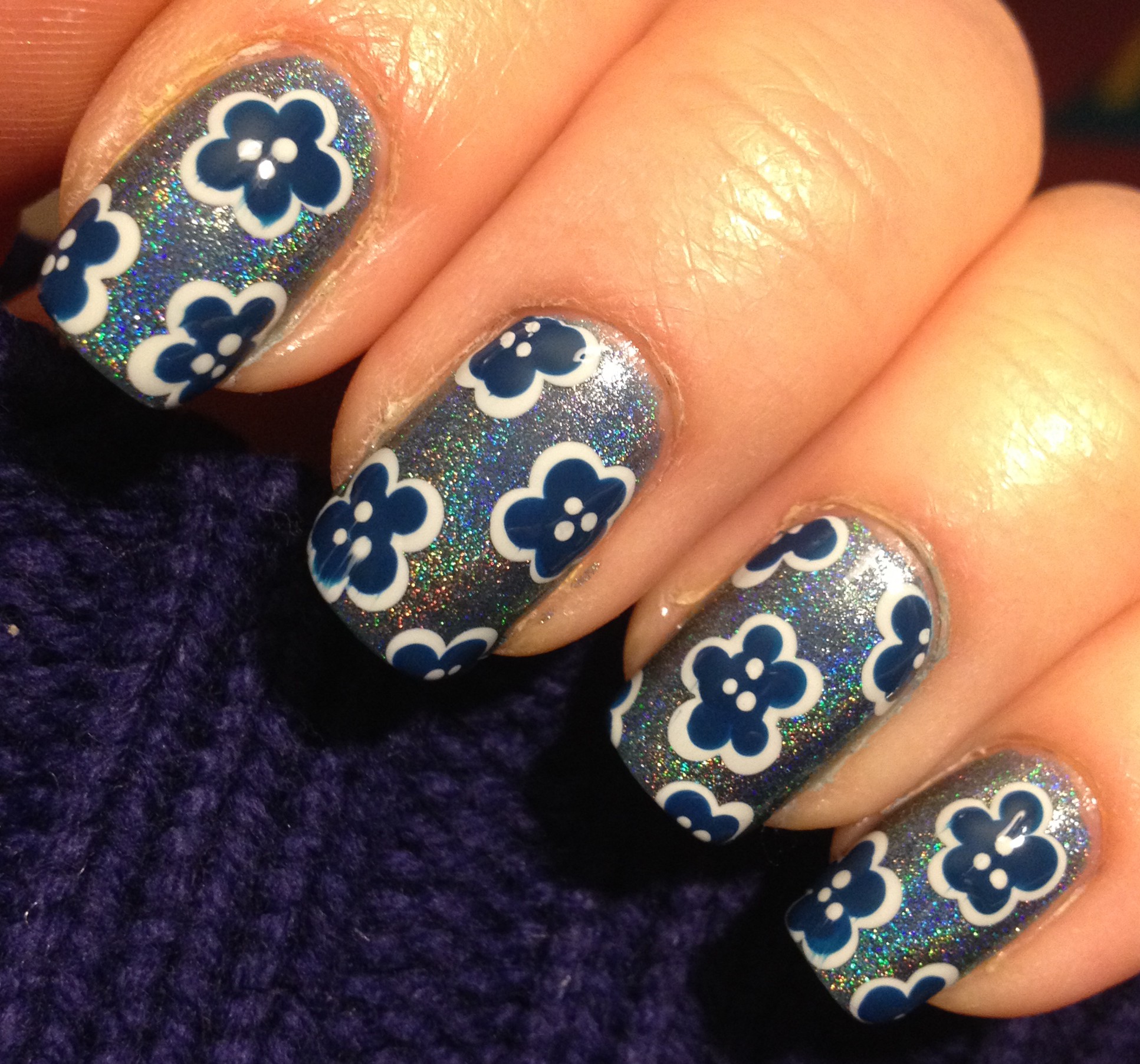 Here’s some really simple flower nail art I did using Tealing No Lies as a base. (I just used my biggest dotting tool to make 5 petaled flowers with a really light blue polish, and then I made slightly smaller petals with a deep blue polish over the light petals. Then I used a little dotting tool to add some dots to the centers. Super easy and no artsy skills required!)