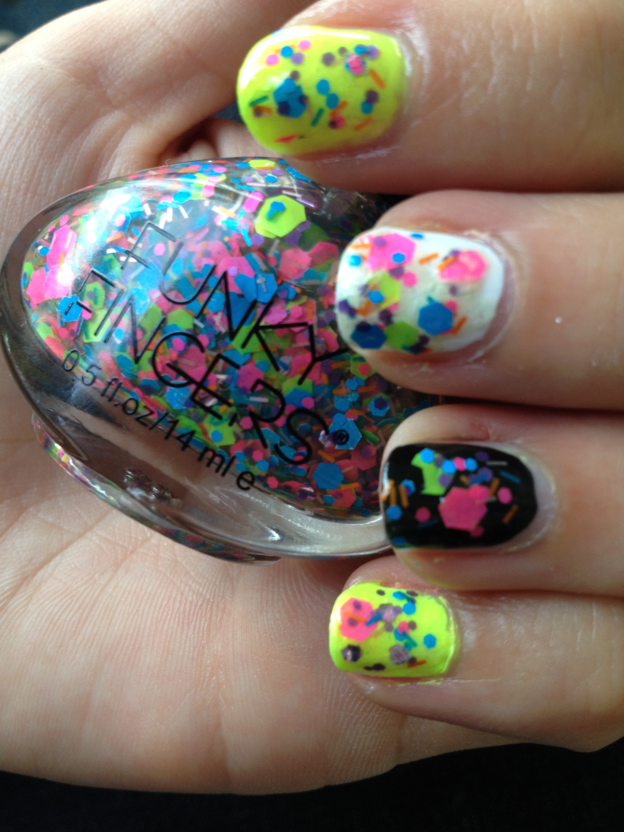 At Kmart, however, I did find two dead-on dupes for Love Fest. Here’s Love Fest on the left, then in the Middle is Sally Hansen – Hard-Core Party in the middle, and Sally Hansen – Tickled Pink on the Right. (Yeah, both the Sally Hansen polish and the Wet n Wild Polish are called Tickled Pick. People need to come up with more clever names.) I picked up Hard-Core Party since it was only $.50, and I can definitely verify that these two are pretty much exactly the same.