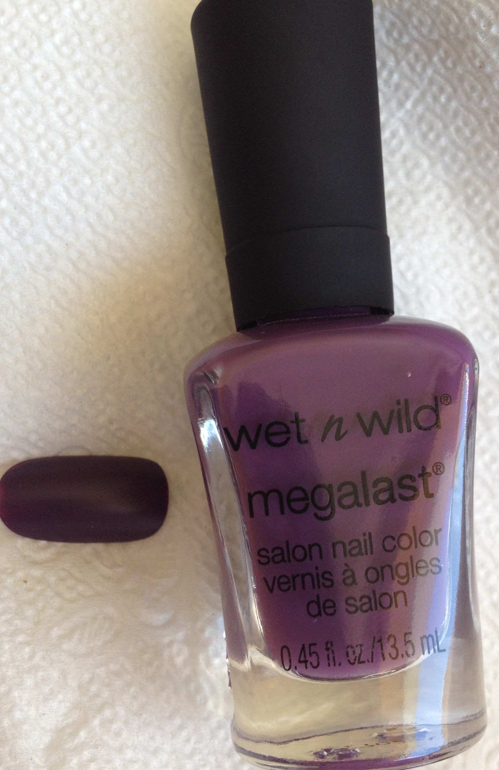 sake. The next polish is Sally Hansen – Hard Bitten. This is a little less purple than Breeze on By, and it has a fine silver shimmer. I’m not sure if that shimmer actually shows up when you get it on your nails or not. Next is Sally Hansen – Babe Blue. Babe Blue also has a shimmer running through it. From images I’ve seen online of this polish, the shimmer just barely shows up. (Rant: Why is it so difficult to make a periwinkle polish with a shimmer that actually shows up? Am I missing something here? Nothing is more annoying than purchasing a polish and then not being able to get what you see in the bottle to show up on your nails.) Babe Blue is really close to Breeze on By, maybe just a hair more blue. I think it’s probably just about identical to Wet n Wild – Wear Skinny Jeans.