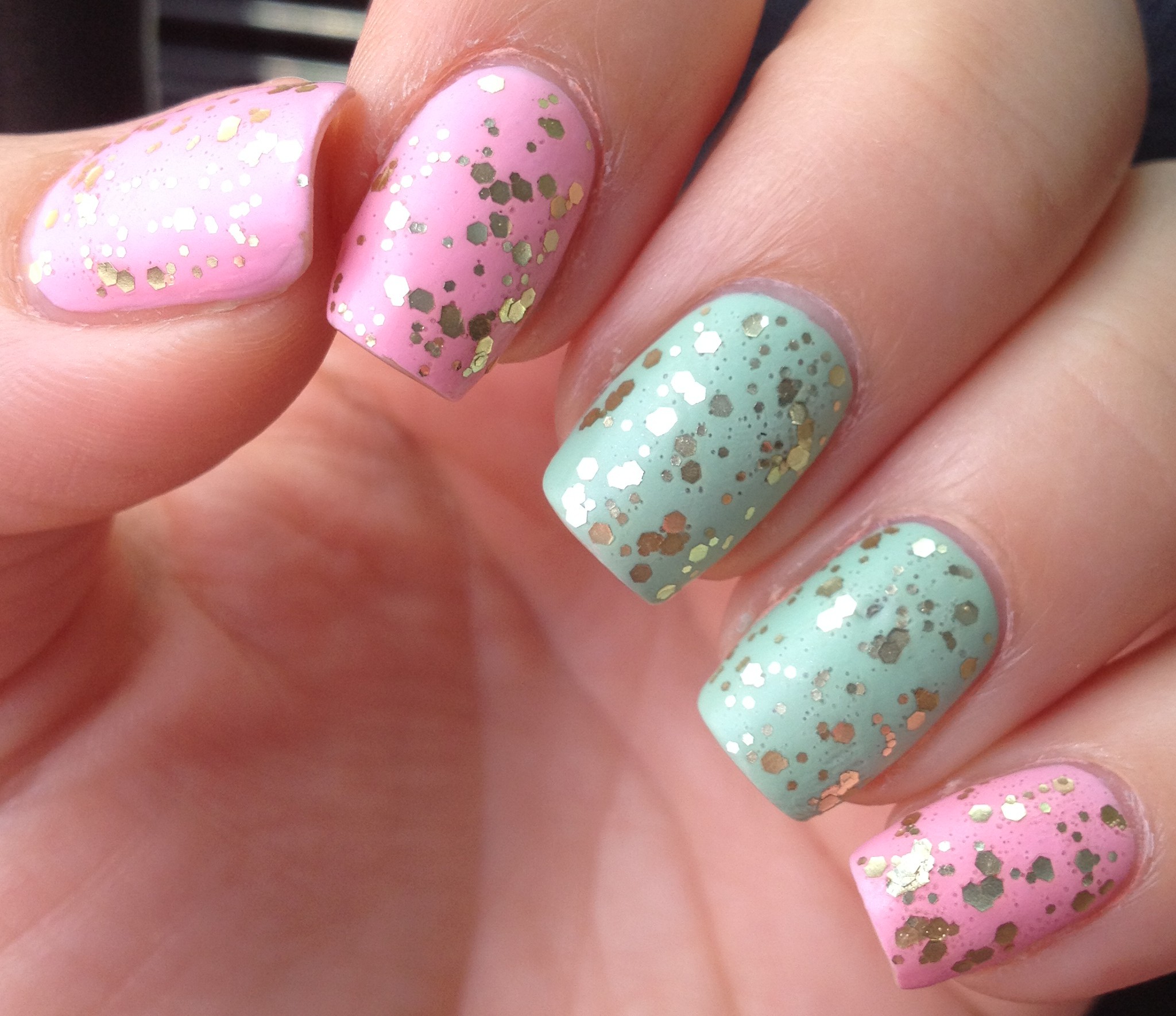 So anyway, after adding the purple and green polish, I finished off with a matte top coat. I don’t know why, but I feel like dry
