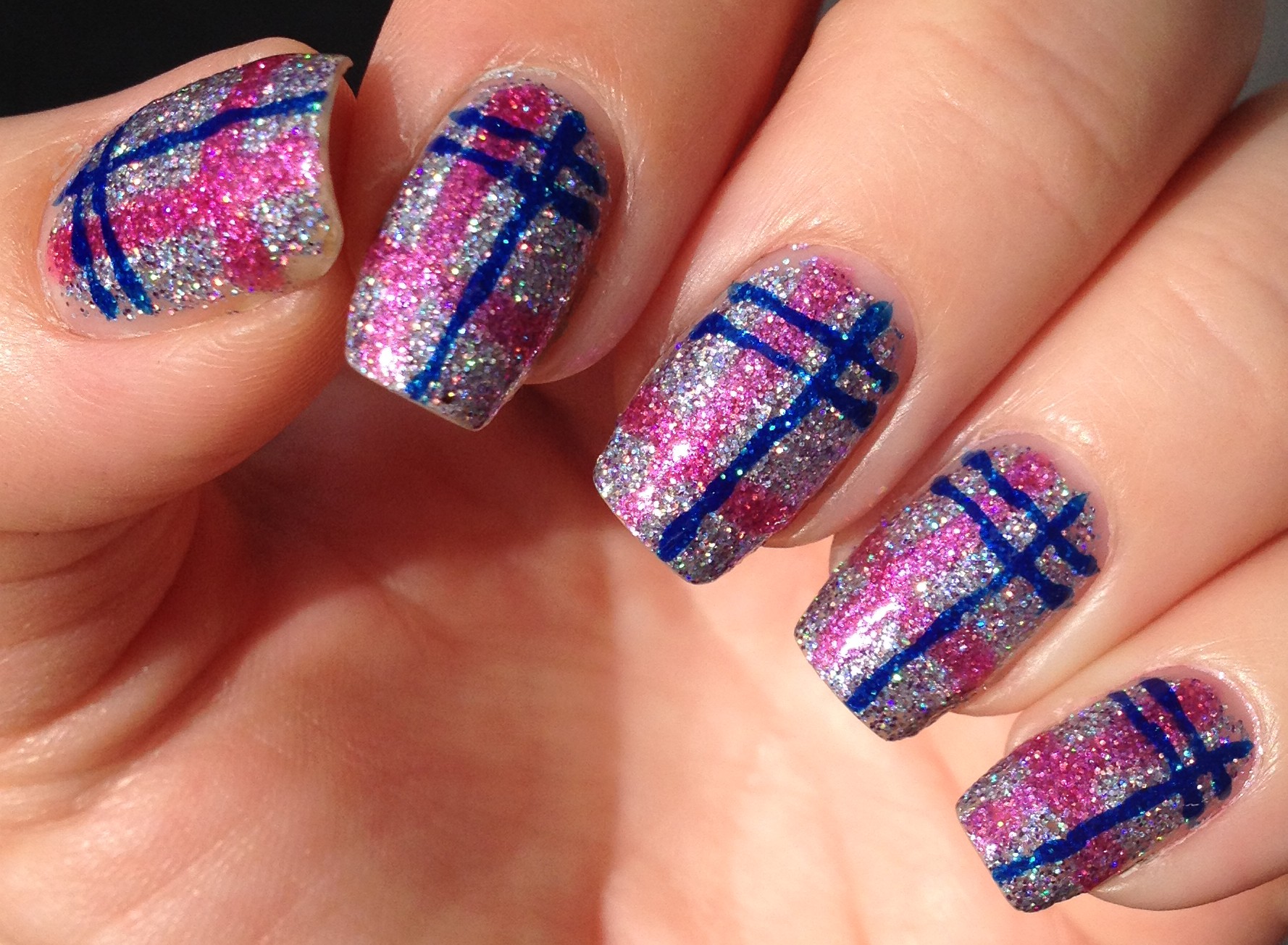 and drag the brush over your nail. I decided to mix it up, so I dragged the brush down my thumb, middle finger and pinky vertically, and across my other two fingers horizontally.