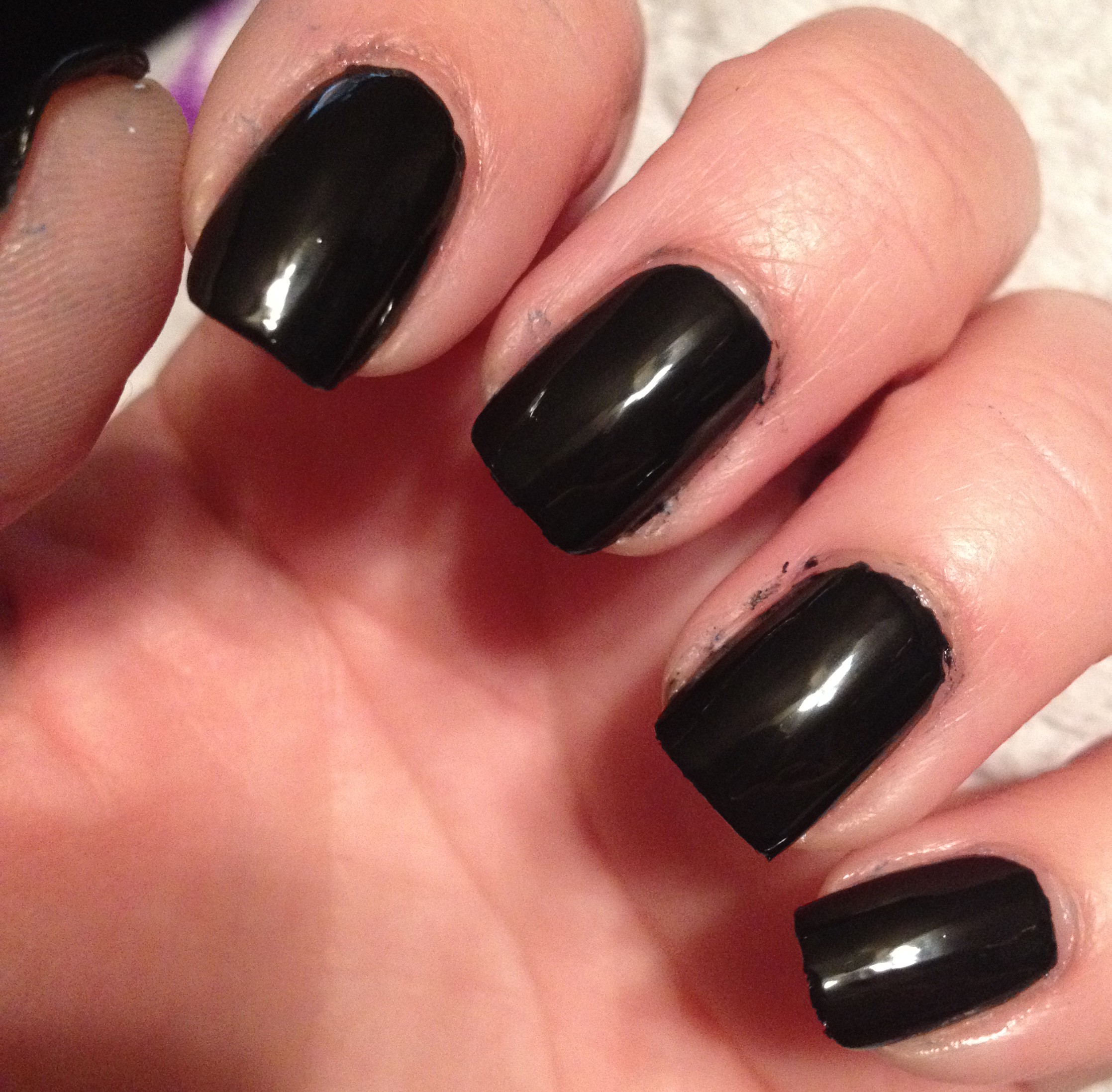One more thing, though… This polish is the mother of all stainers. What you’re looking at here on the right is my middle and ring finger on my right hand after I removed the mani I was wearing on the left. Wild Wild Violet left the nail on my middle finger a crazy bright pink! I’ve never seen a