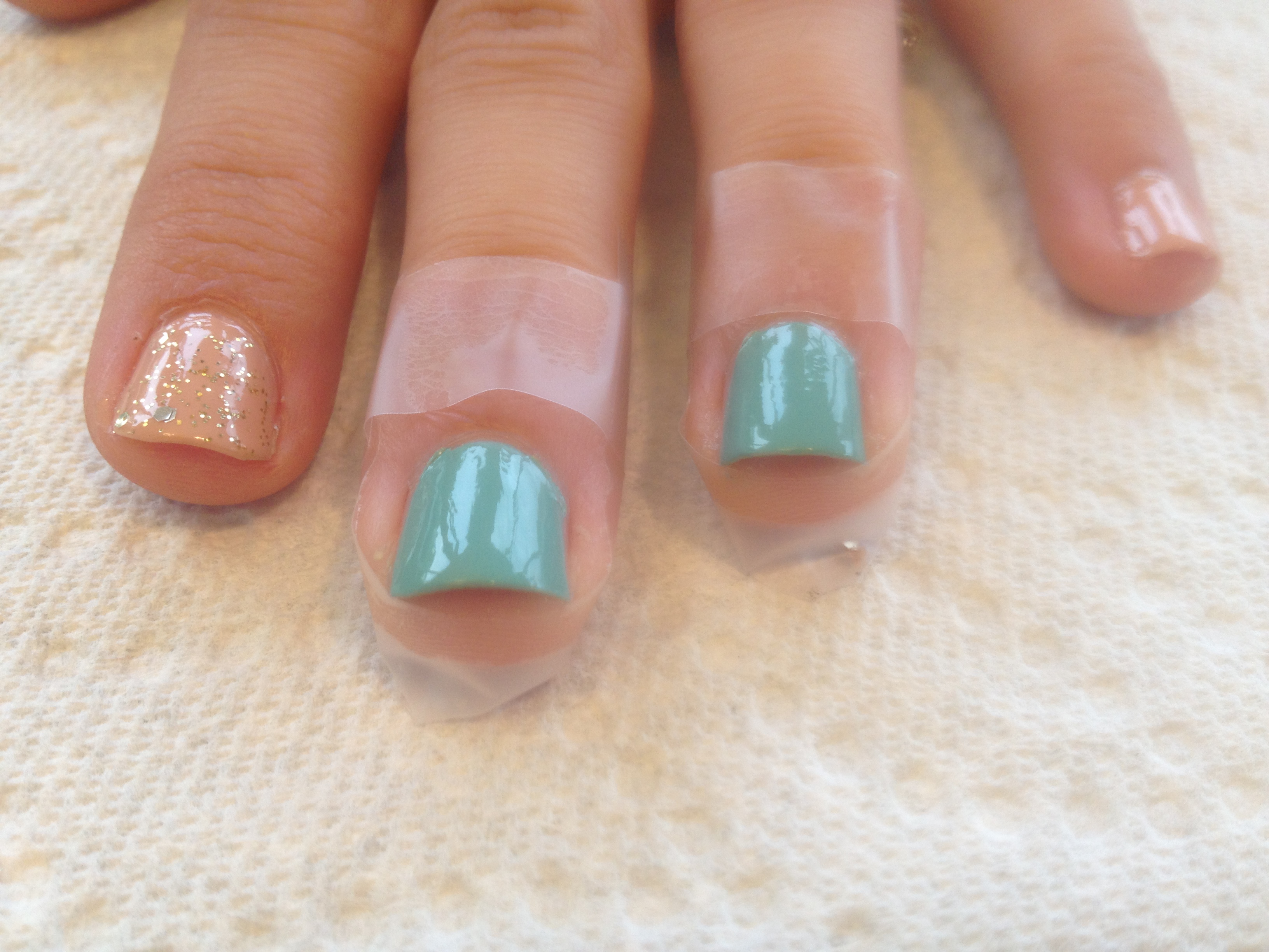 Now you can see the reason for the tape. It’s to keep all of that extra polish for sticking to your fingers, which will make cleanup a lot easier.